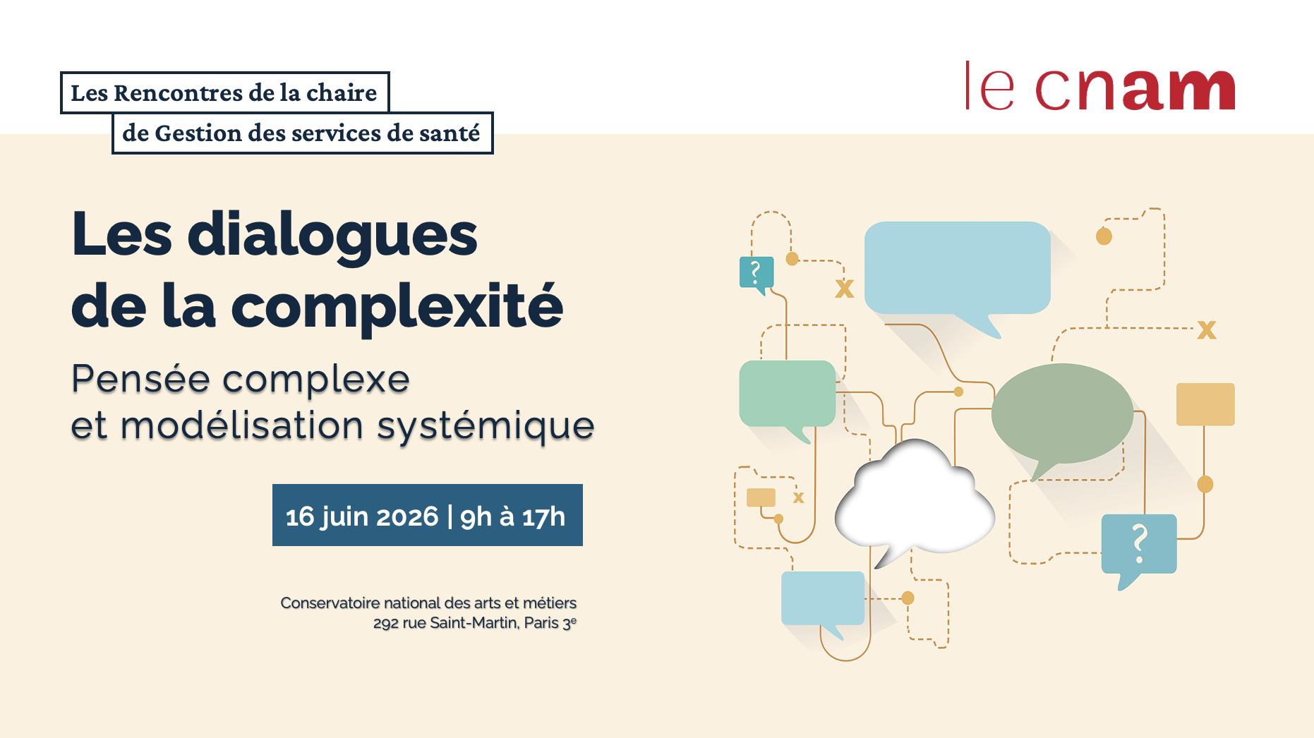 Ces Dialogues ont vocation à rassembler les enseignants-chercheurs et doctorants de toutes disciplines (sciences humaines et sociales, sciences de l’ingénieur, sciences infirmières, santé publique, etc.) qui mobilisent la pensée complexe ou la modélisation systémique dans leurs travaux de recherche et/ou leurs enseignements et projets pédagogiques.